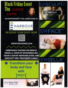 Join us November 20th from 6–8 PM at 53 Narragansett Ave, Jamestown, RI for unmissable savings on Emsella, Exion RF Microneedling, Exion Clear RF Microblasion, and Emsculpt Neo treatments. A great time to see why our most-loved technologies are patient favorites.